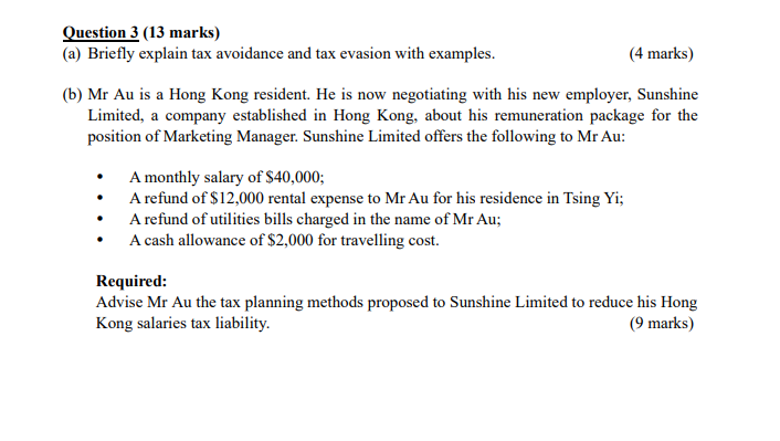 Solved Question 3 13 Marks A Briefly Explain Tax Chegg Com
